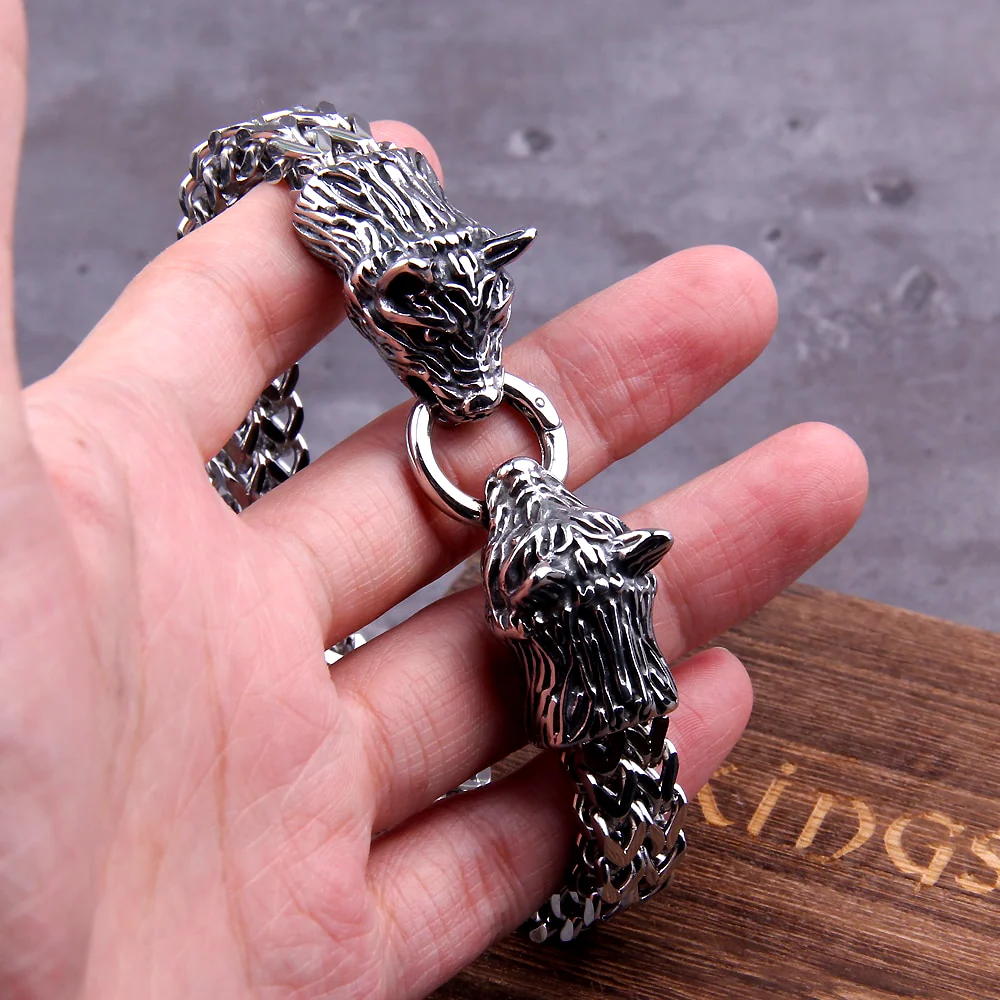 Wölfe waren auf vielen nordischen Artefakten und in den Sagen präsent, oft mit unterschiedlichen Bedeutungen. Fenrir war eine der Hauptfiguren in den Sagen, der Sohn von Loki und Angrboða. Es wurde prophezeit, dass er sich von den Ketten, in denen er gefesselt war, befreien, die Sonne und den Mond verschlingen und Odin in der Schlacht von Ragnarök verschlingen würde. |